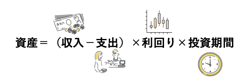 資産がどのように作り上げられていくかは上記のような数式で説明されます。