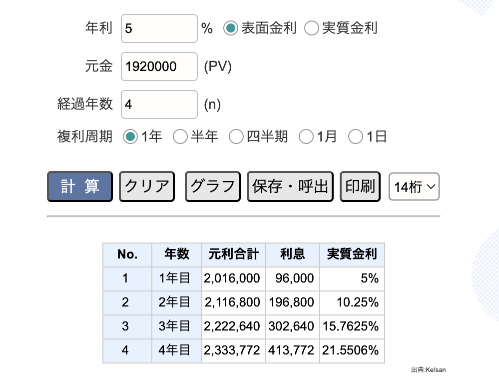 一方で複利は受け取った利益も加算して、毎年増えていく形式です。