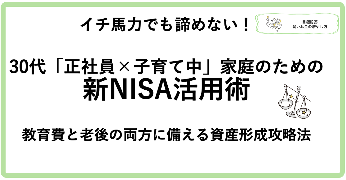 30代家庭を襲う「教育費を貯めると老後が不安、老後を優先すると学費が足りない」という悩み。これに対する実践型FPとしてのおすすめは、「新NISAでの一括管理」です。