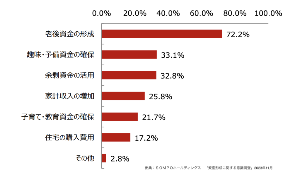 私たちは、なぜ資産形成が必要なのでしょうか。SOMPOホールディングスの調査によると「資産形成が必要な理由」は、